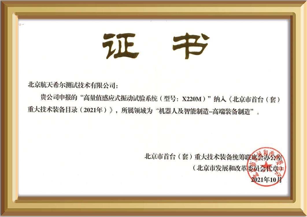 2017年,研發成功8噸水冷大位移振動臺;研發成功20噸感應式振動臺;入選北京市“智能制造關鍵技術裝備供應商”。